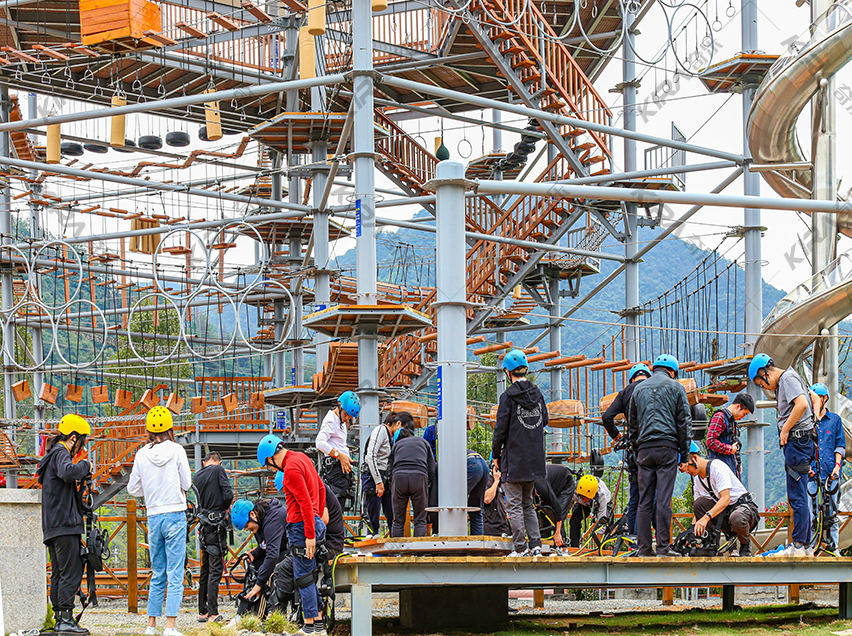 超凡的设计,稳固的结构和互锁式双保险钩,每一个中转平台连接多个项目路径,人员不会阻滞,可多路径通行,适合热爱冒险,挑战极限的人群,也可以家庭、企业单位进行团体冒险挑战,是团体个人休闲娱乐挑战的绝佳场所。在这里游客可以抛开工作生活上的忧虑,插上勇敢的翅膀,畅享痛快至极的玩乐与激情释放。还等什么,快来一同体验充满极致的探险塔拓展挑战吧!