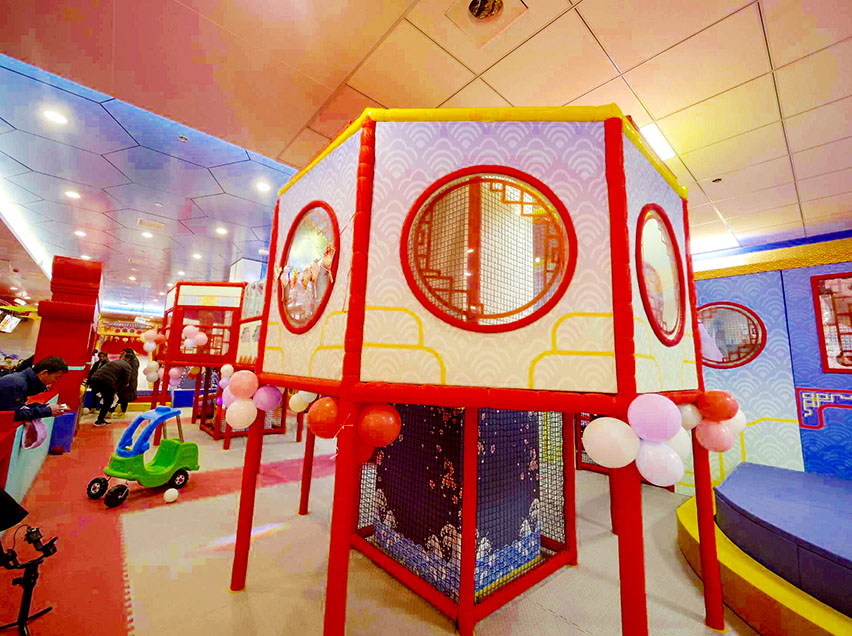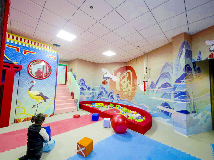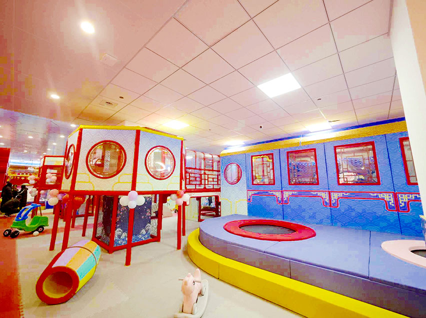 、拓展、椰子树、弹跳迷宫等项目,玩法丰富有助于儿童身心健康成长。国潮风主题形象地将带有浓郁传统节日文化色彩的喜庆元素展现出来,从而增强了乐园文化属性。真正将中华文化精粹植入乐园项目中,为游客打造一个传承悠久历史文明的古风世界,使孩子们在玩乐中从小培养起对传统文化的认同与自豪感。