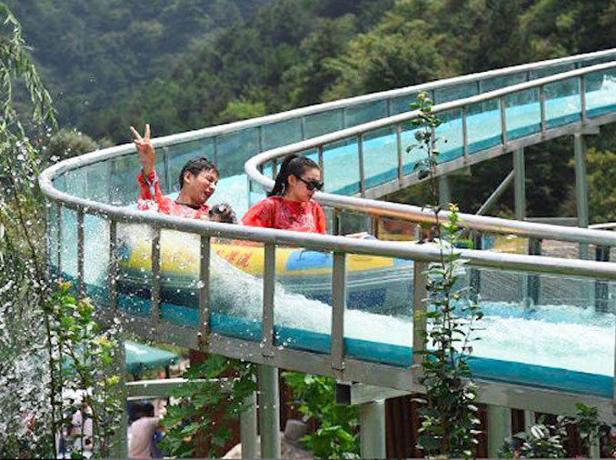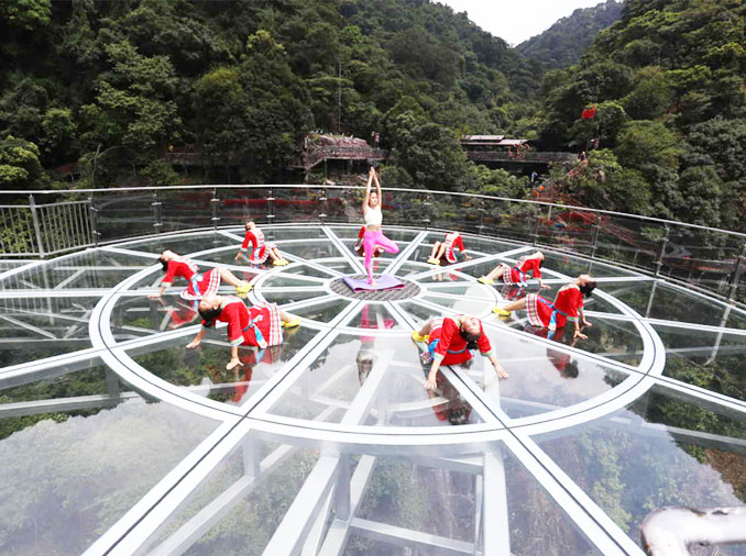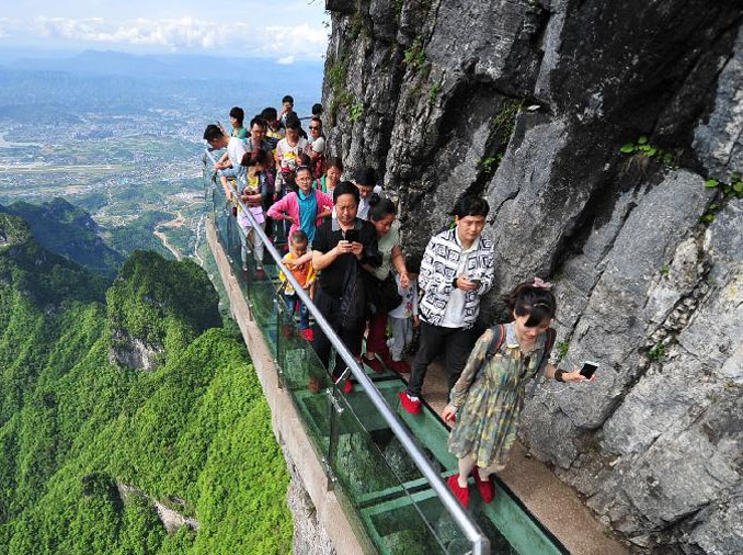 The transparent bottom and sides slides bring tourists drop down f...