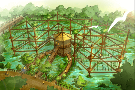 Ropes course has built in OCT East which is a destination of international resort tourism. The ropes course with two levels, 42 elements and two levels tower.