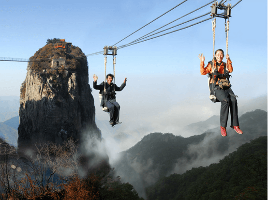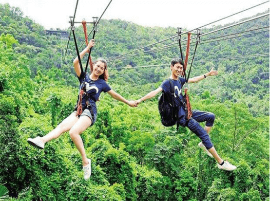 Zip line tours are becoming popular vacation activities, which are found at outdoor adventure camps or upscale resorts, where they may be an element on a larger challenge or ropes course.